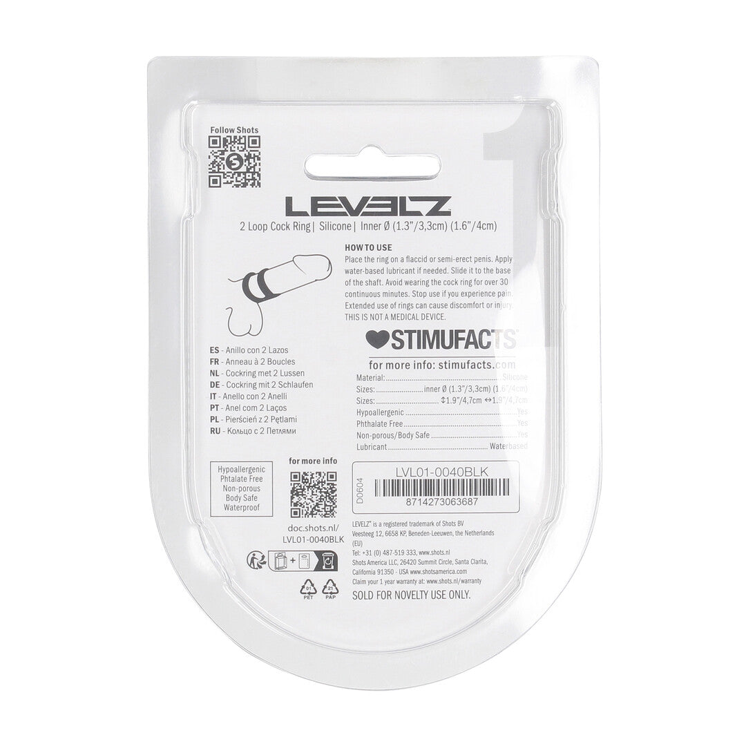 Double the grip, double the control. This 2-loop cock ring from the LEVELZ collection is designed to slide onto the shaft, providing extra pressure and precision placement. Whether you're stacking for sensation or using one loop as a stabilizer, this non-vibrating ring delivers added intensity . Made from body-safe silicone and packaged in a sleek clamshell for effortless retail display.