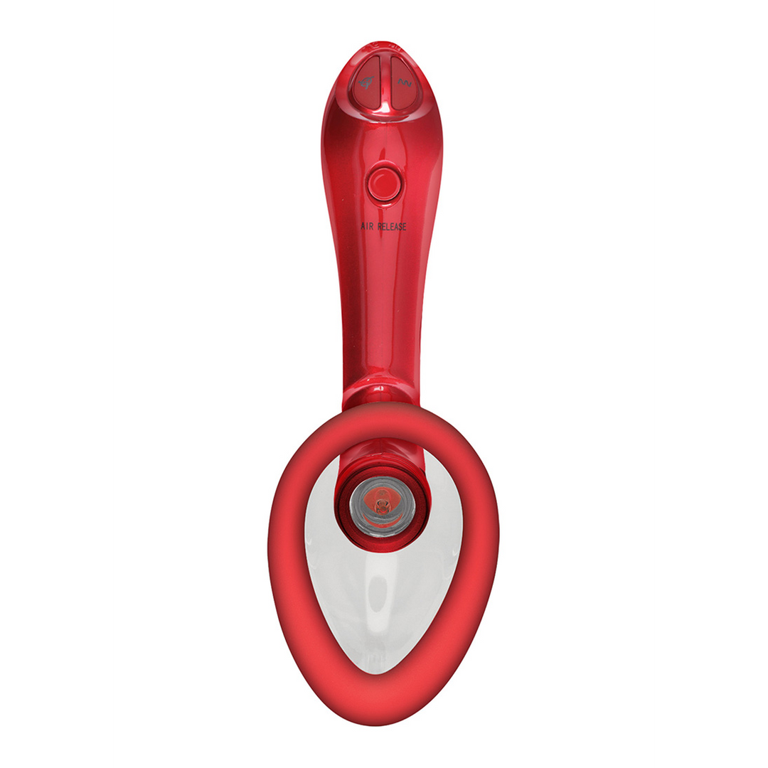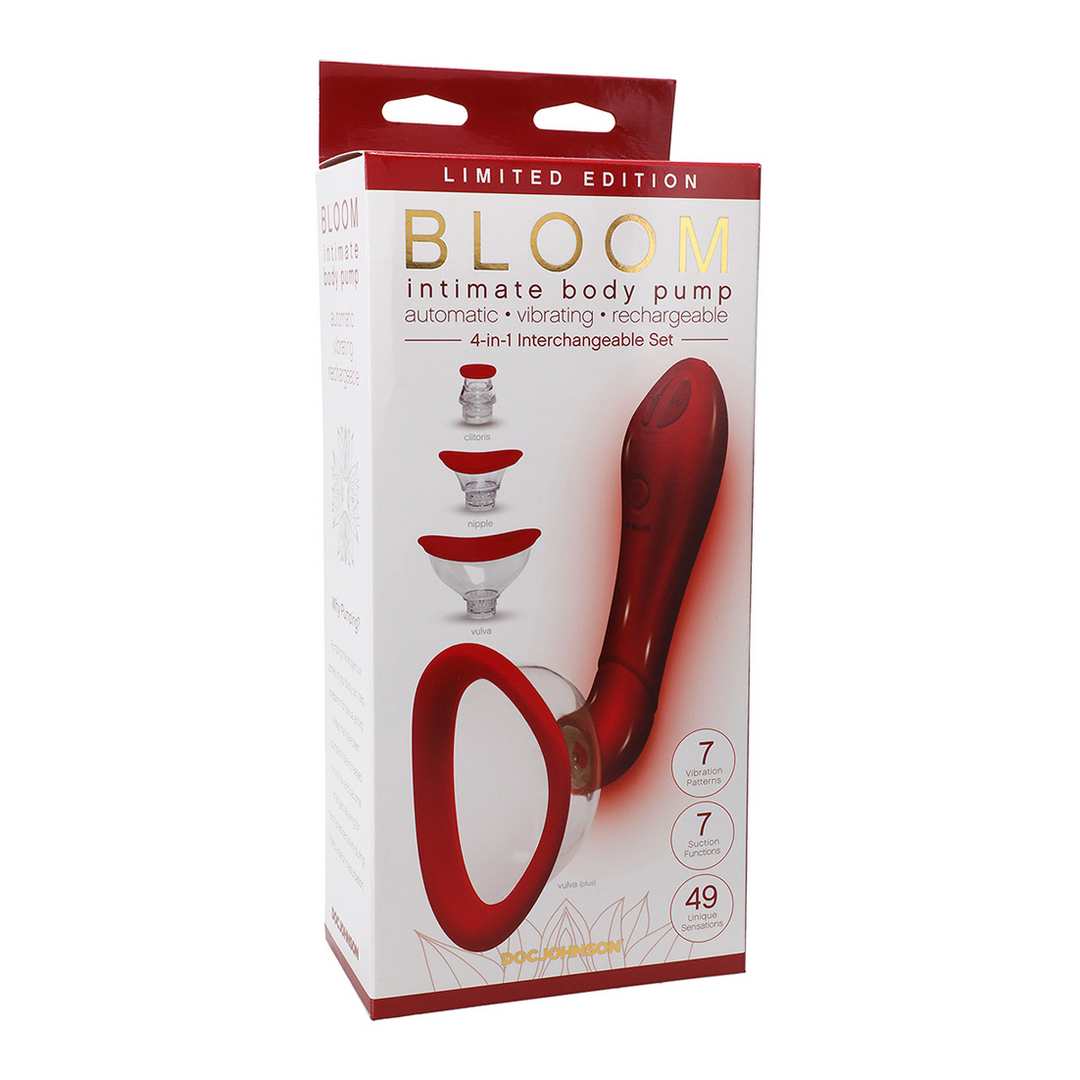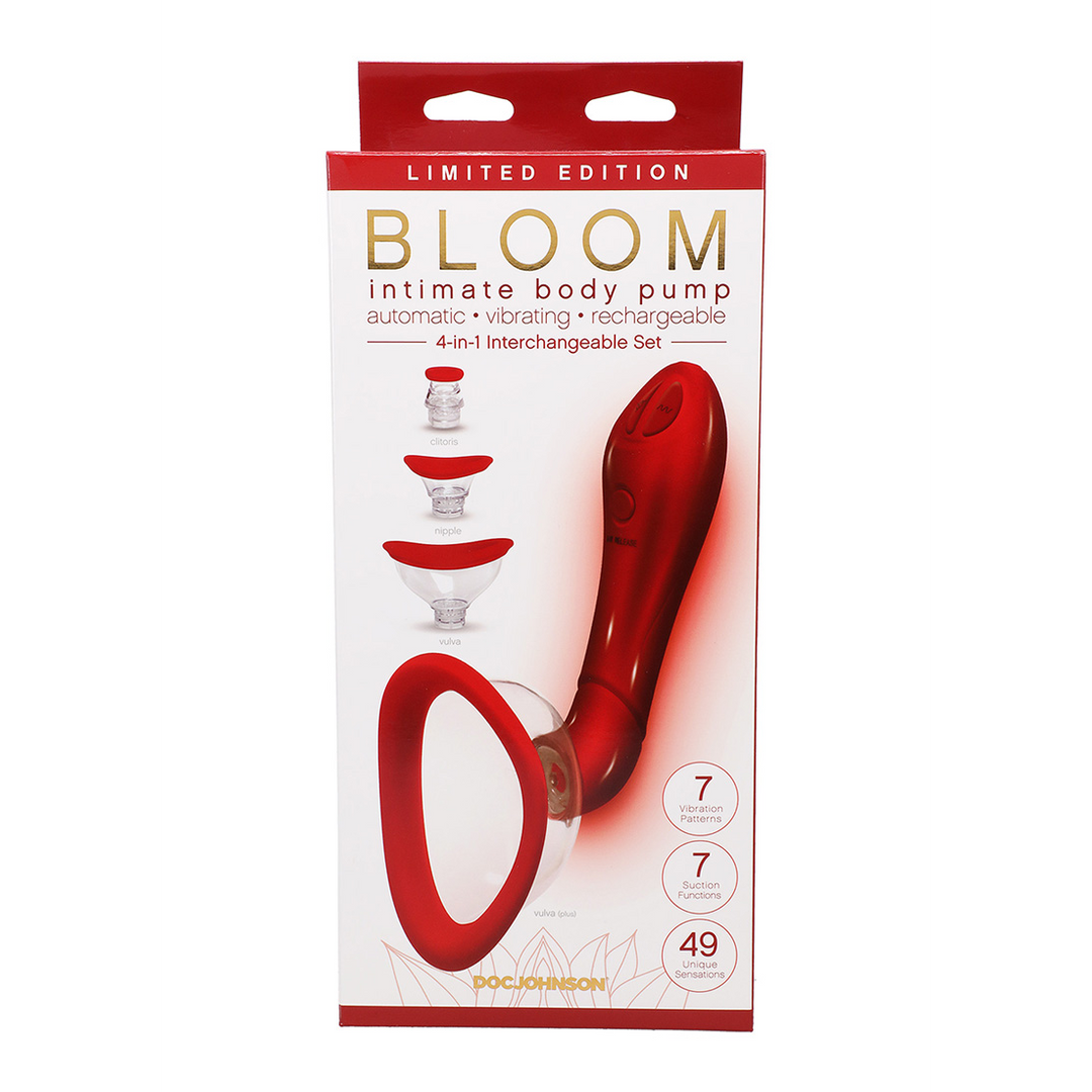 Let your flower bloom. This automatic suction cup and vibrator has 4 different-sized, interchangeable heads with soft, silicone rims made for stimulating the user's clitoris, vulva, and nipples. The cups are designed to follow the natural curve of a woman's body, and the handle is ergonomically designed for comfortable use. 7 vibration patterns and 7 suction functions allow for 49 unique sensations, which operate with just the touch of a button and can be enjoyed hands-free once the optimal seal is formed. Additional features including an instant air release button, power locking feature, and USB charging ensure that your pump play is always safe and worry-free. Full instructions for enjoyment and maintenance of your pussy pump are included.