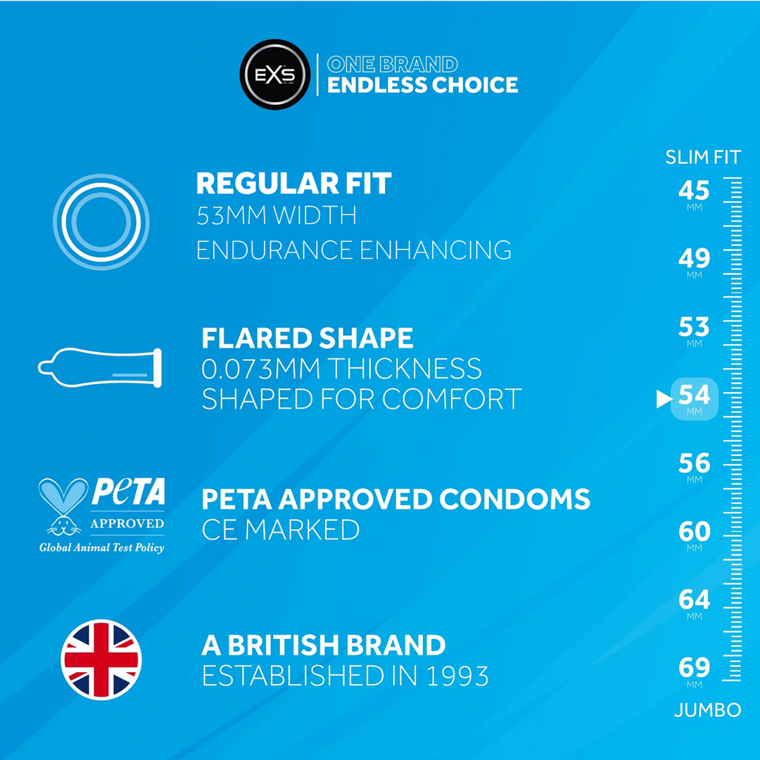 Met 144 stuks heb je een royale voorraad in huis. EXS condooms worden streng getest volgens Europese normen en zijn CE-gecertificeerd. Ze zijn bovendien vegan, PETA approved en alcoholvrij. Houdbaarheid: minimaal 3 jaar vanaf aankoop.
