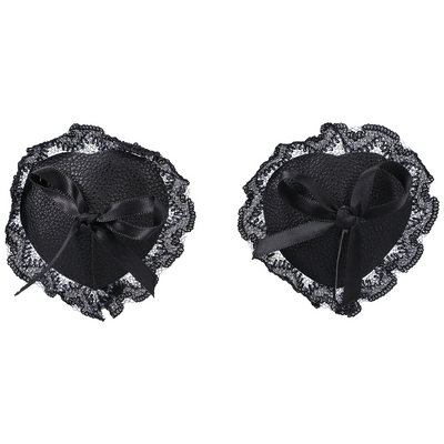 Keep only what needs to be covered with these sexy black vegan leather and lace pasties.