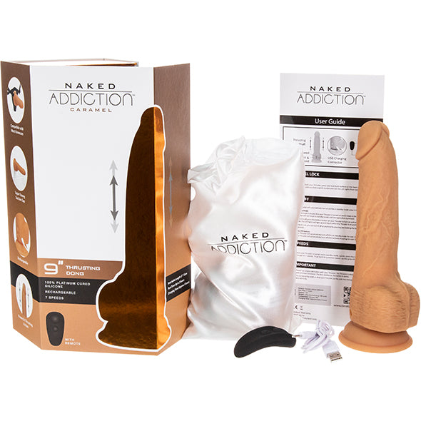 Naked Addiction - 9 Inch Thrusting Dong met Remote Caramel