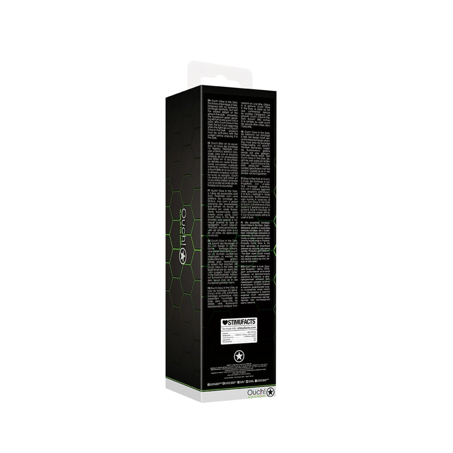 Ouch! Glow in the Dark, de toekomst van bondage is hier. Het design heeft het autentiek bondage uiterlijk, maar brengt licht in het duister door zijn fluoresecrende groene details waardoor alles een feest wordt.