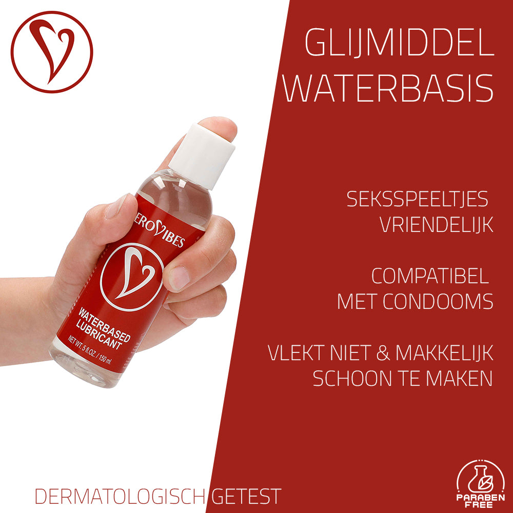 Het is heel aangenaam om net een beetje soepeler te glijden wanneer je erotisch van elkaar, of jezelf geniet. Voor deze momenten is ons Erovibes Glijmiddel Op Waterbasis Premium 150 ml uitermate geschikt. Het glijmiddel voelt zijdezacht aan en is te gebruiken in combinatie met speeltjes en condooms van natuurlijk rubberlatex, polyurethaan en polyisopreen.