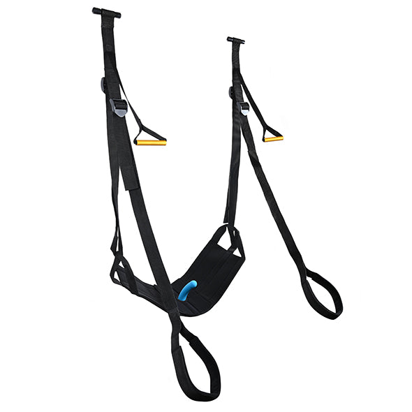 Special Edition Door Swing past over een massieve deur. Ondersteunt gewicht tot 147 kilo. Maakt meerdere posities mogelijk voor partners, inclusief 'gewichtloze seks'. De lengte van de sling is verstelbaar in de zitting en voetsteunen.