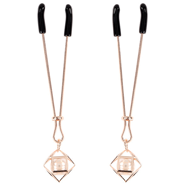 Duw op alle knopjes van je meester voor de perfecte "straf". De verstelbare Brat Pearl Nipple Clips bieden gevarieerde sensaties, van zacht knijpen tot knijpende genoegens. Versier je tepels met deze prachtige roségouden clips die druipen van de nepparel en maak je klaar om de spanning op te voeren.