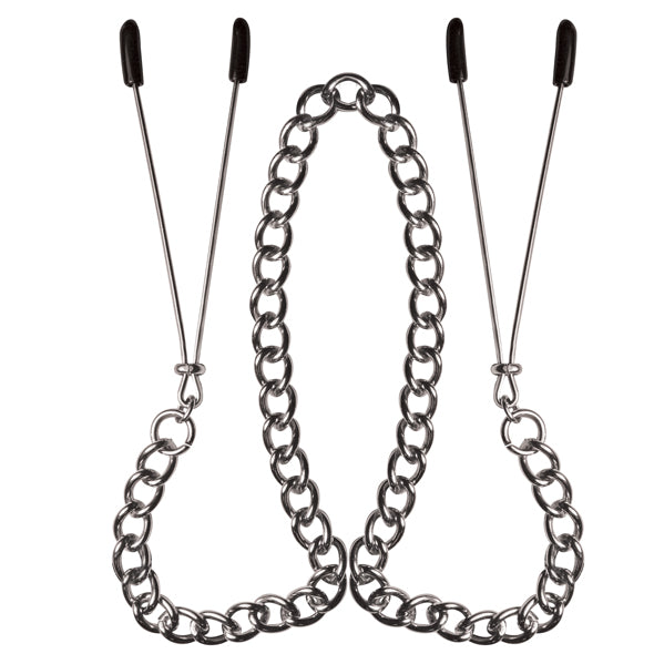 Met met rubber omhulde tips om een comfortabel klemgevoel te garanderen, zijn deze aantrekkelijke clips geweldig voor nieuwsgierige nieuwkomers in de BDSM-ervaring, maar ze blijven een essentieel onderdeel van je speelgoedcollectie. Voel de pijn en het plezier van je partner onder controle en verhoog geleidelijk de druk met de gebruiksvriendelijke schuifring. Een verbindingsketting zorgt voor de extra trekkracht naar een verhoogde climax.