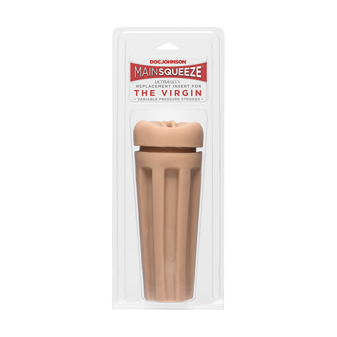 Be her first. Doc Johnson's Main Squeeze line of hard case masturbators is designed to put the power in your hands, featuring a squeezable grip that lets you vary the tightness of each stroke and a suction-adjusting end cap. Featuring an extra-tight textured interior with a hymen that really breaks, this ULTRASKYN™ stroker looks and feels just like popping her cherry. Each ULTRASKYN™ sleeve features a different textured interior, making every experience as unique as the real thing. The double-cap hardshell design doubles as a discreet travel and storage case, keeping your Main Squeeze fresh and ready for whenever the mood strikes.
