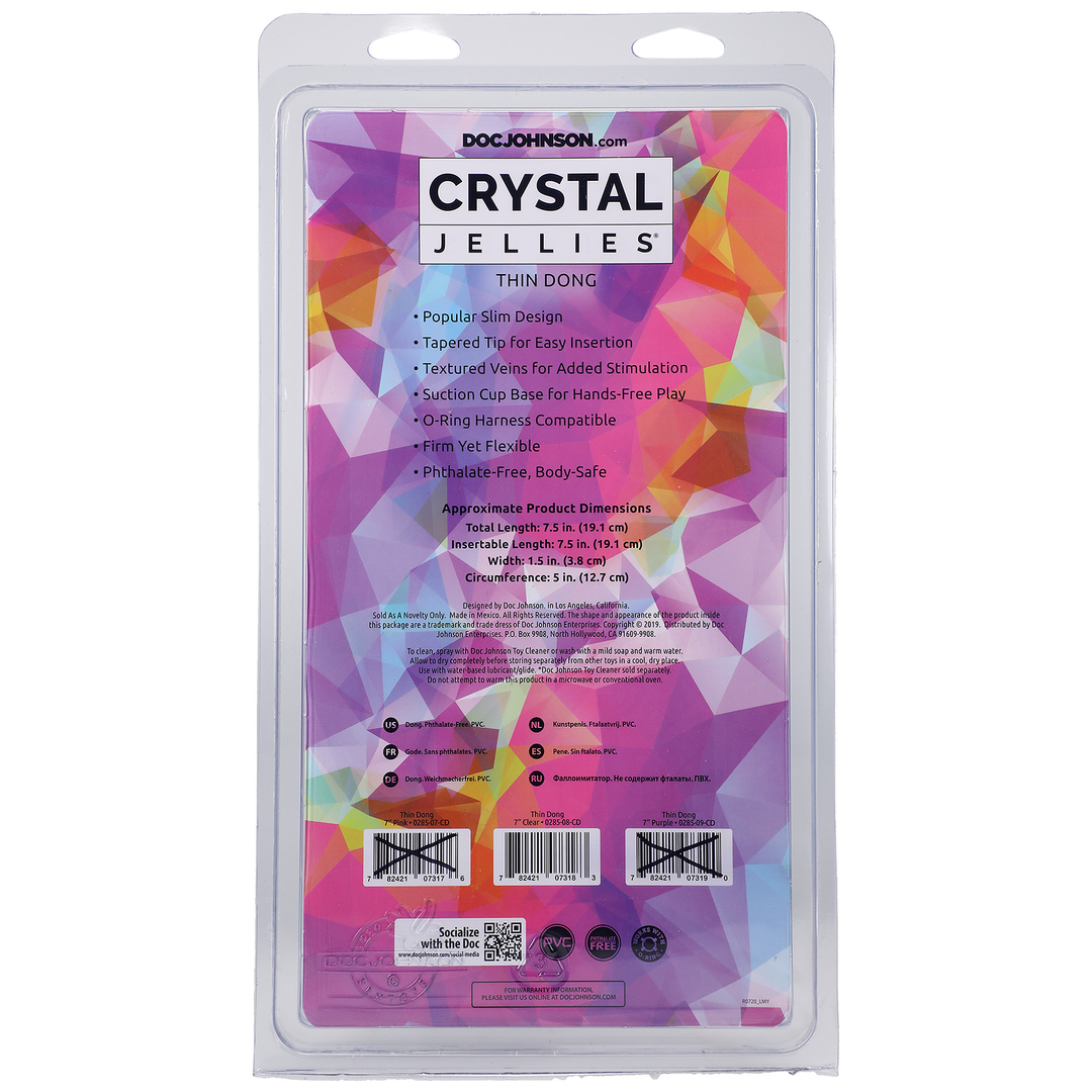 The moderate width and slim tapered tip of the Crystal Jellies 7-Inch Thin Dong are designed for easy entry and optimal pleasure. This dong features a lifelike phallic shape complete with realistic veins and skin texture in an assortment of beautiful crystalline tones, and a built-in suction cup base that seamlessly enables hands-free fun.Our crystal balls predict pure pleasure in your future.