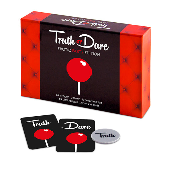 Truth or Dare Erotic Party Edition speel je met je vrienden en vriendinnen (18+) vlak voor je uitgaat, tijdens een feestje of wanneer je als groep gewoon eens zin hebt in ‘spanning en sensatie’. Het pikante spel staat garant voor een openhartige en hilarische tijd. Speel je om punten, bepaal dan vooraf wat de winnaar mag verwachten (van de verliezer).