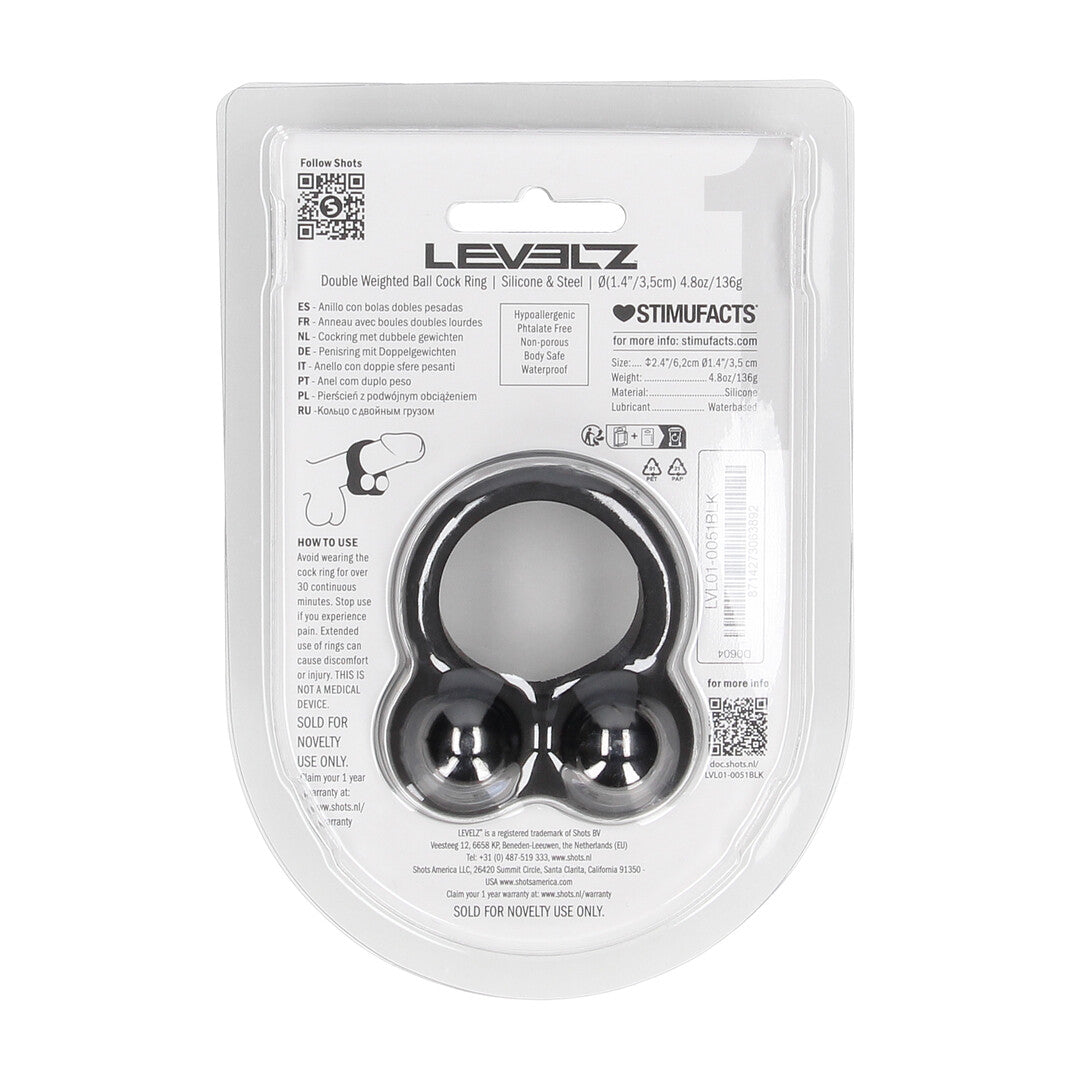 Level up with added intensity. This double weighted cock ring from the LEVELZ collection combines the firm grip of premium silicone with an internal weight for extra pressure and a more grounded, full-bodied feel. Perfect for users who crave that satisfying tug during wear. Non-vibrating, body-safe, and packaged in a sleek clamshell for easy display.