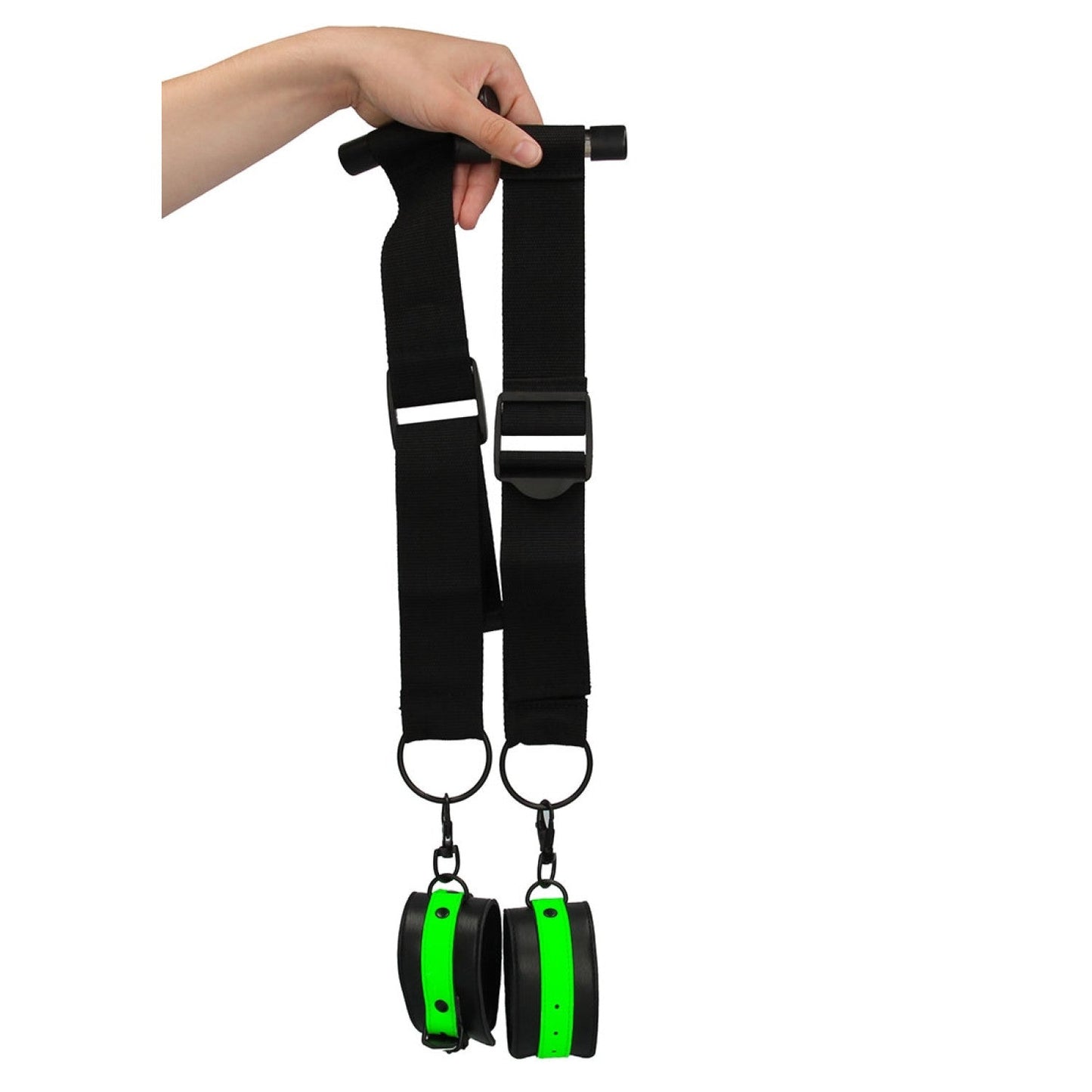 Gemakkelijk vast te maken aan elke door voor bondage plezier. Bindt jouw partner vast en laat de spelletjes beginnen! Ouch! Glow-In-The-Dark producten moeten worden geactiveerd met het zonlicht voordat je er in het donker van kunt genieten.