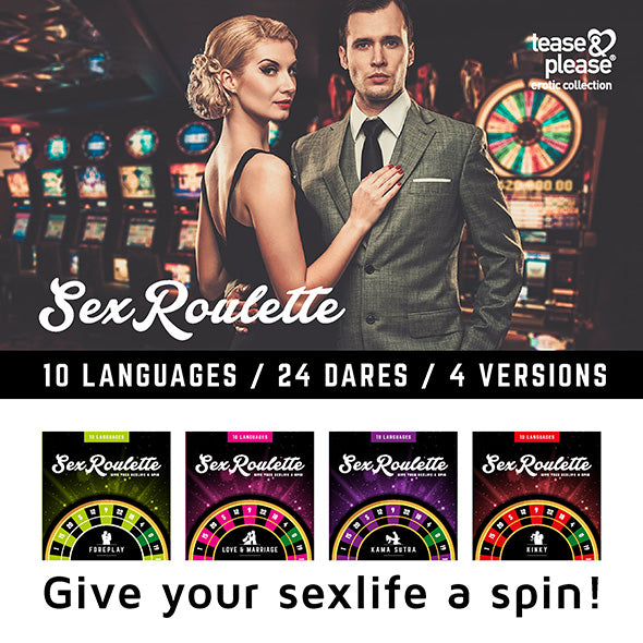 Sex Roulette is de nieuwste spelserie van Tease and Please. De erotische spanning in je liefdesleven vlamt al op met een zwier aan de pijl van deze draaischijf. Het nummer, waar de pijl stopt, bepaalt welk opwindend standje jullie te wachten staat.
